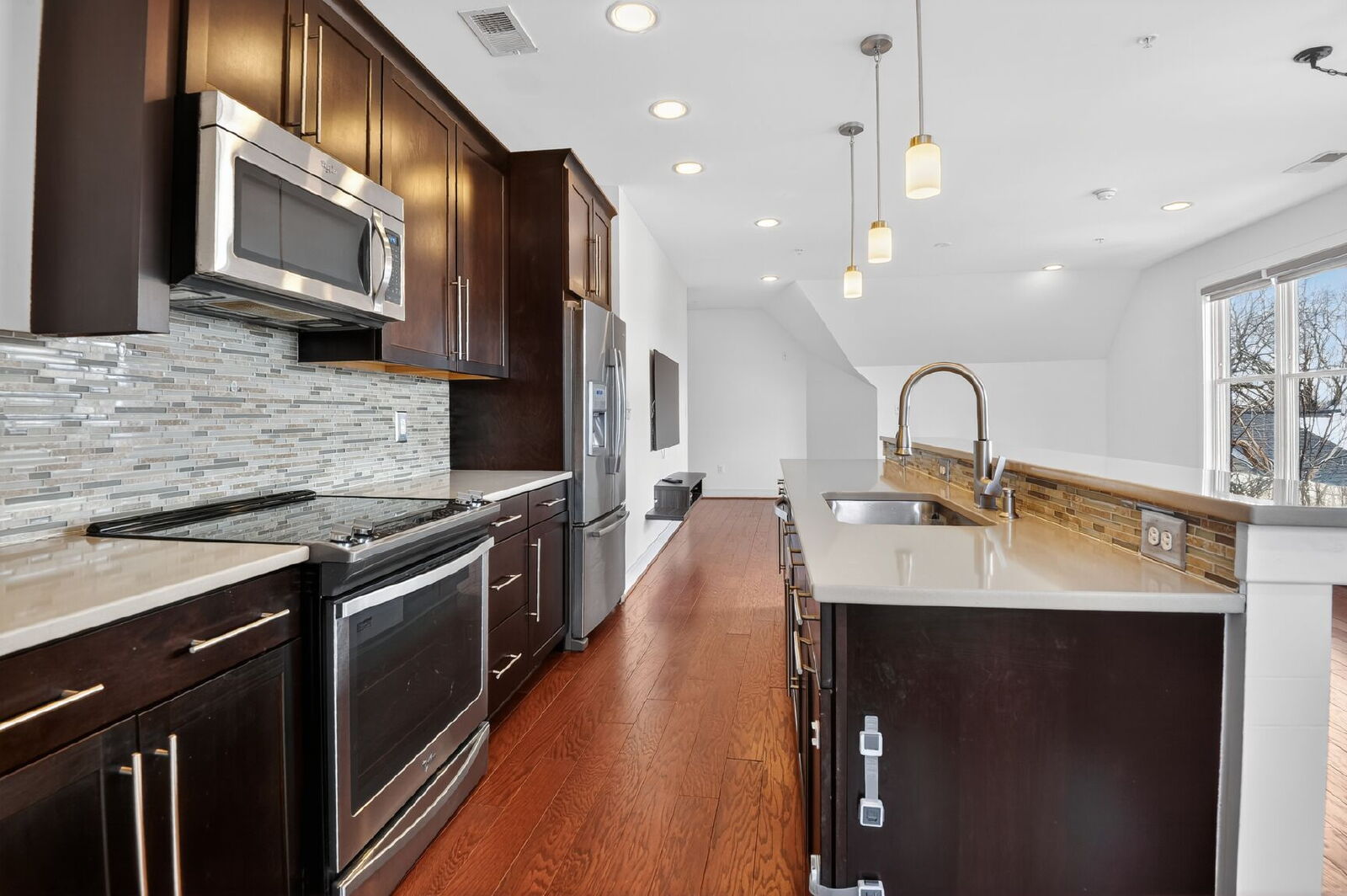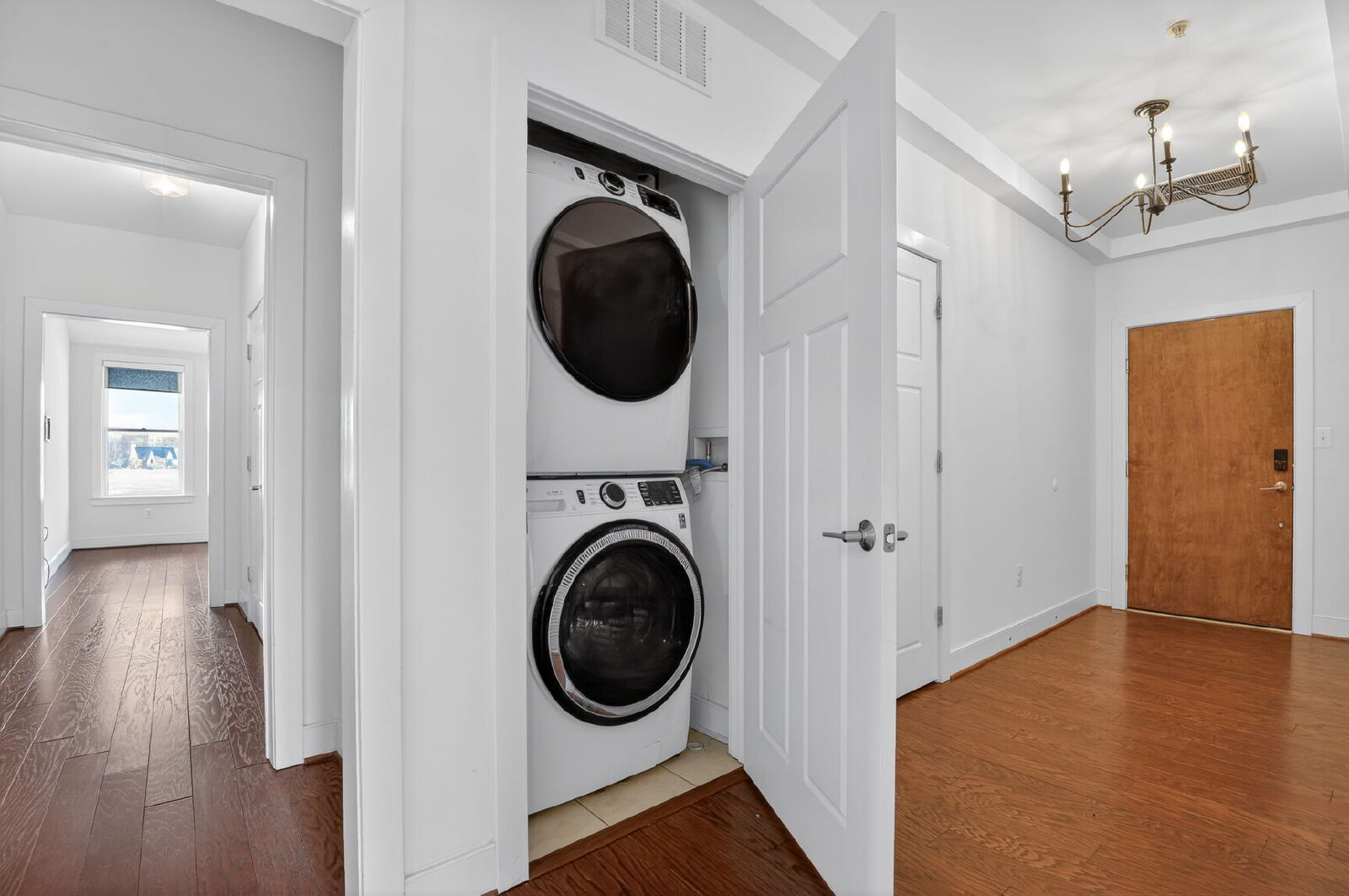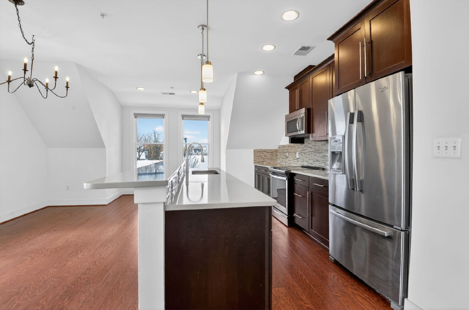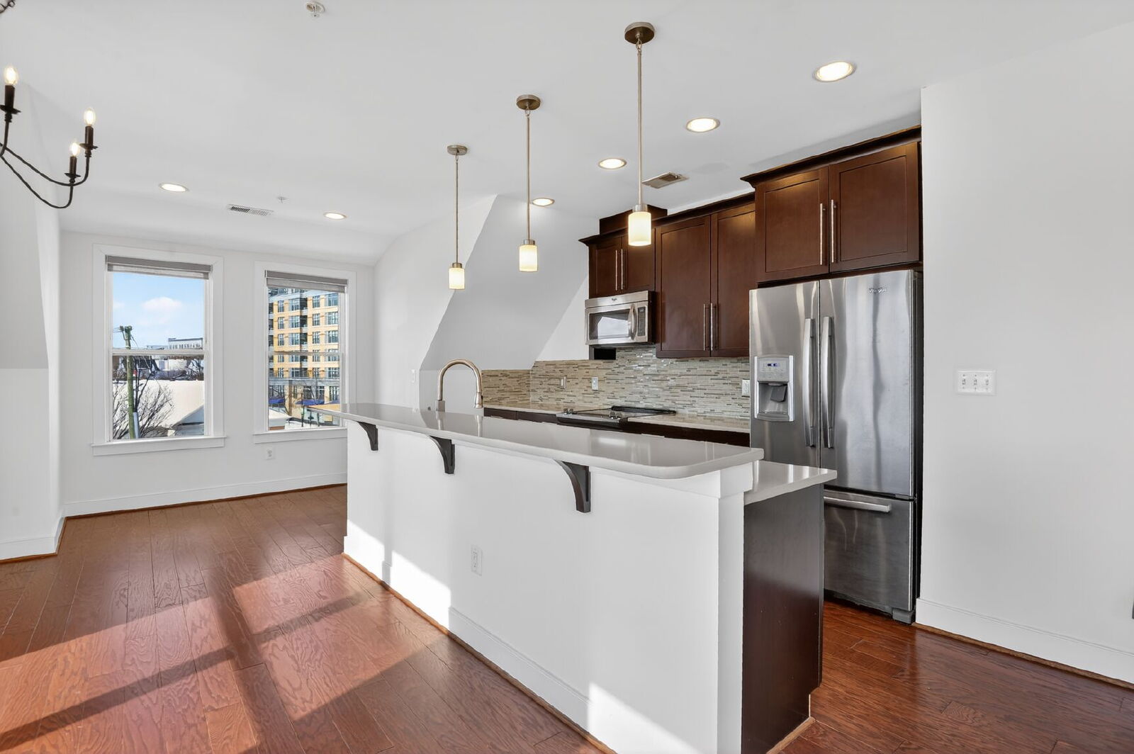 Immerse yourself in the elegance and comfort of this stunning 1,326 sq ft penthouse condo nestled in the heart of Arlington. This spacious haven offers two full bedrooms and two luxurious baths, ensuring a perfect retreat for relaxation and rejuvenation. Step into a world of sophistication with gleaming hardwood floors and soaring 9' ceilings that seamlessly blend with the chic, modern design of the open-concept kitchen, dining room, and living room.